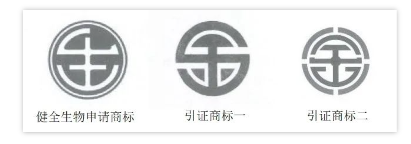 此前,國(guó)家知識(shí)產(chǎn)權(quán)局以健全生物申請(qǐng)注冊(cè)的商標(biāo)構(gòu)成“2014年商標(biāo)法”第三十條所指情形為由,駁回了該商標(biāo)在復(fù)審商品上的注冊(cè)申請(qǐng)。北京知識(shí)產(chǎn)權(quán)法院以健全生物申請(qǐng)的商標(biāo)與引證商標(biāo)一、二構(gòu)成在相同或類似商品上的近似商標(biāo)為由,駁回了健全公司的訴訟請(qǐng)求。(“2014年商標(biāo)法”第三十條 申請(qǐng)注冊(cè)的商標(biāo),凡不符合本法有關(guān)規(guī)定或者同他人在同一種商品或者類似商品上已經(jīng)注冊(cè)的或者初步審定的商標(biāo)相同或者近似的,由商標(biāo)局駁回申請(qǐng),不予公告。)