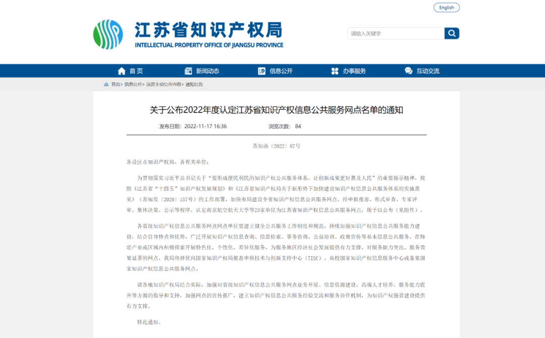 08 三聚陽光無錫公司被認(rèn)定為江蘇省知識產(chǎn)權(quán)信息公共服務(wù)網(wǎng)點