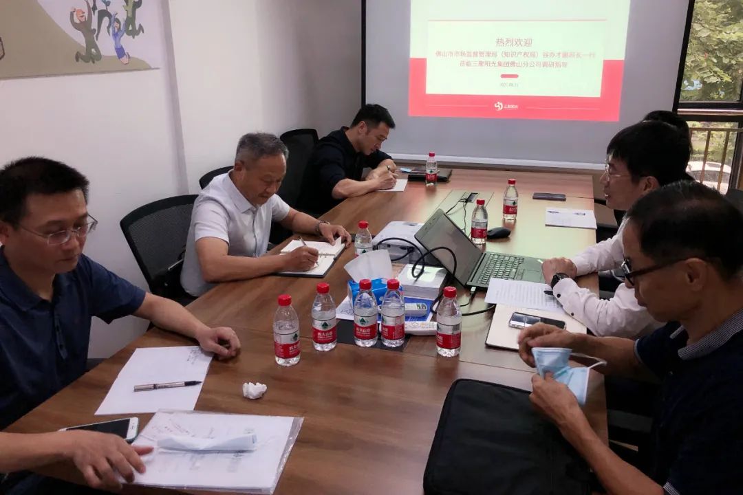 8月11日上午,佛山市市場(chǎng)監(jiān)督管理局(知識(shí)產(chǎn)權(quán)局)副局長(zhǎng)谷辦才及知識(shí)產(chǎn)權(quán)促進(jìn)科科長(zhǎng)賴志軍、潘科堯一行蒞臨三聚陽(yáng)光佛山分公司調(diào)研并指導(dǎo)工作,認(rèn)真聽(tīng)取了佛山分公司現(xiàn)階段工作開(kāi)展情況工作匯報(bào)。