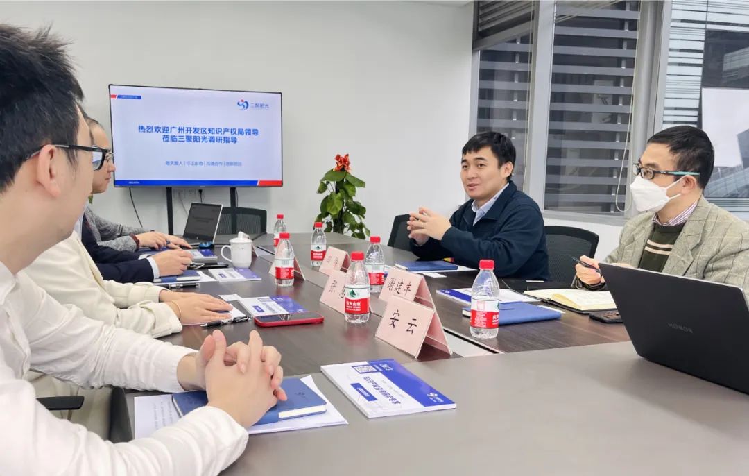 張建綱總裁及張慧總經(jīng)理向田帥副局長(zhǎng)匯報(bào)了三聚陽(yáng)光知識(shí)產(chǎn)權(quán)集團(tuán)的發(fā)展?fàn)顩r、人才團(tuán)隊(duì)情況以及廣州市的合作客戶及合作項(xiàng)目等內(nèi)容。田帥副局長(zhǎng)對(duì)三聚陽(yáng)光落戶廣州開(kāi)發(fā)區(qū)表示了歡迎,并向我司負(fù)責(zé)人介紹了開(kāi)發(fā)區(qū)的知識(shí)產(chǎn)權(quán)政策。