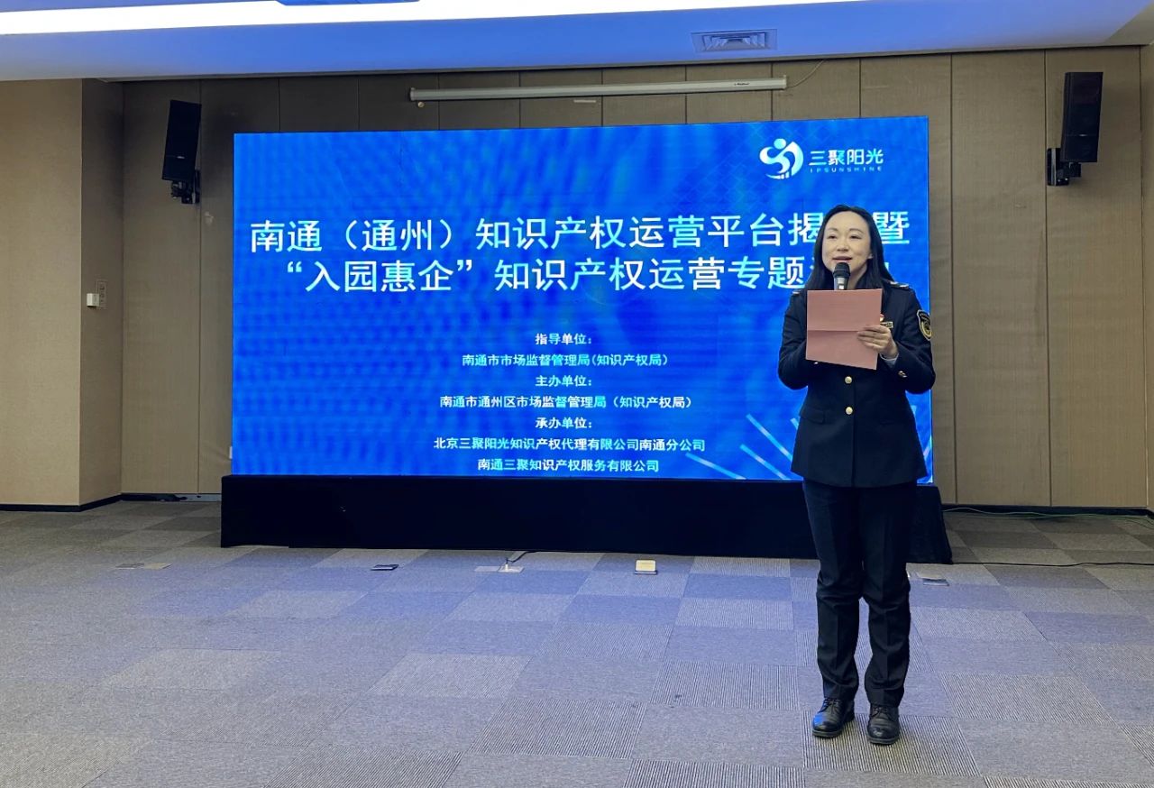 南通市市場監(jiān)督管理局(知識(shí)產(chǎn)權(quán)局)領(lǐng)導(dǎo)、南通市通州區(qū)市場監(jiān)督管理局(知識(shí)產(chǎn)權(quán)局)知識(shí)產(chǎn)權(quán)科科長曹小寧、南通大學(xué)知識(shí)產(chǎn)權(quán)運(yùn)營中心主任高江寧、南通高新區(qū)科技局人才知識(shí)產(chǎn)權(quán)科長黃華、三聚陽光知識(shí)產(chǎn)權(quán)集團(tuán)總裁張建綱、三聚陽光知識(shí)產(chǎn)權(quán)集團(tuán)華東區(qū)總經(jīng)理鞏琦、江蘇中都國脈知識(shí)產(chǎn)權(quán)運(yùn)營有限公司總經(jīng)理李光磊及多位企業(yè)代表參加本次活動(dòng)。