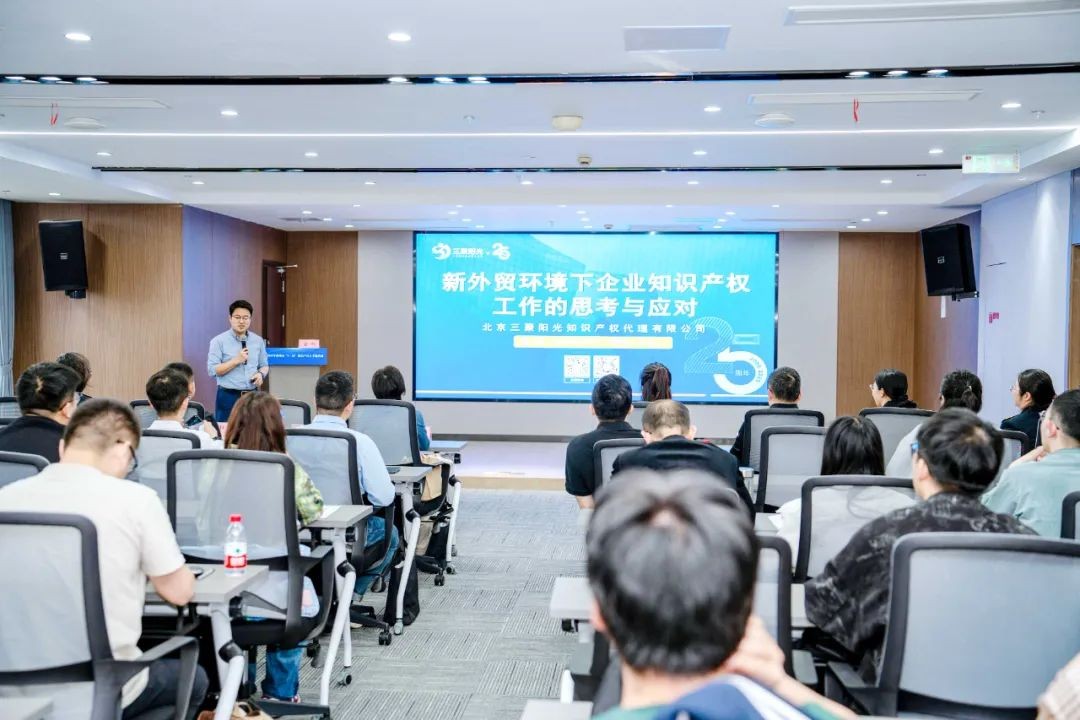 作為本次培訓(xùn)活動的重要環(huán)節(jié),三聚陽光杭州分公司負(fù)責(zé)人張鳴受邀發(fā)表了題為《新外貿(mào)環(huán)境下企業(yè)知識產(chǎn)權(quán)工作的思考與應(yīng)對》的主題演講。張鳴是資深的專利代理師和專利分析師,同時擔(dān)任杭州高新開發(fā)區(qū)(濱江)知識產(chǎn)權(quán)服務(wù)業(yè)促進(jìn)會副理事長等多項(xiàng)社會職務(wù),在知識產(chǎn)權(quán)咨詢服務(wù)領(lǐng)域擁有豐富經(jīng)驗(yàn)。他的分享緊密結(jié)合當(dāng)前復(fù)雜多變的國際貿(mào)易形勢,特別是中美貿(mào)易關(guān)系下的挑戰(zhàn)與機(jī)遇。
