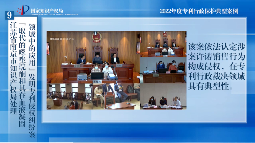 4月25日,國家知識產權局公布《2022年度專利行政保護典型案例》,三聚陽光代理的江蘇省南京市知識產權局處理“取代的噁唑烷酮和其在血液凝固領域中的應用”發(fā)明專利侵權糾紛案”入選。該案還入選了《2022年江蘇省知識產權十大典型案件》。